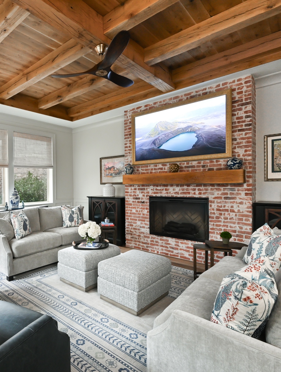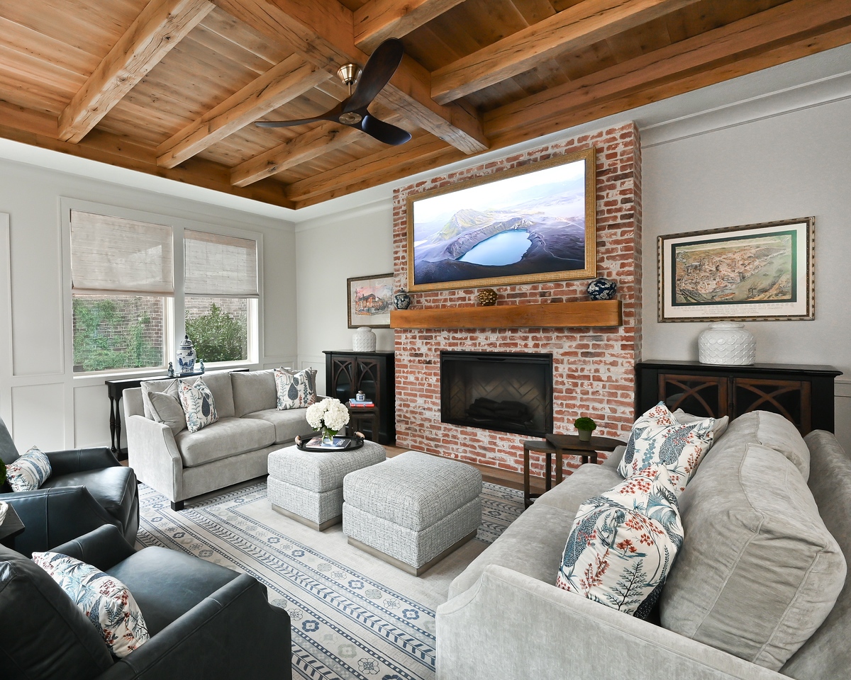 Traditional Living Room – Remodel included Fireplace & Ceiling Wood & Beams